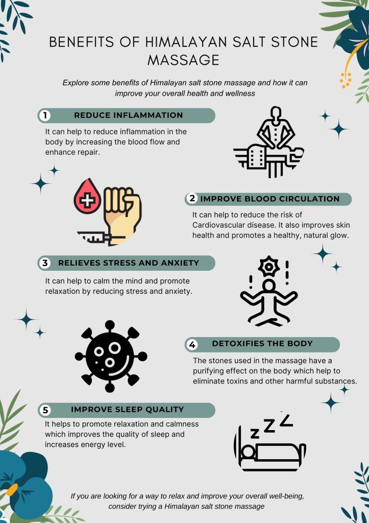 health and wellness, including increased energy levels, improved mood, and better cognitive function. In conclusion, Himalayan salt stone massage is a unique form of massage therapy that offers numerous benefits for overall health and wellness. From reducing inflammation to improving sleep quality, this type of massage can be an effective way to improve your physical and mental health. If you are looking for a way to relax and improve your overall well-being, consider trying