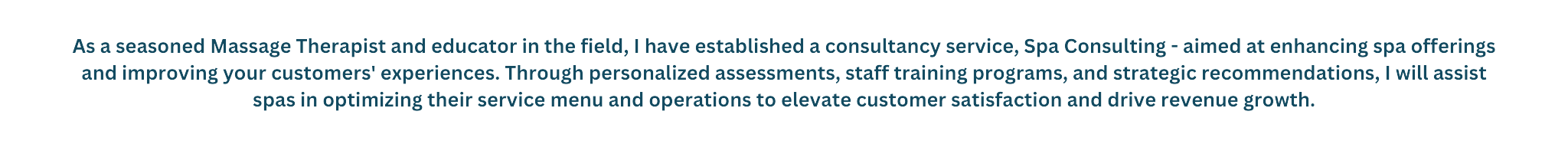 ✔️ Tailored Consultancy Services: Customized consultancy services for spas seeking to enhance their massage therapy offerings.
